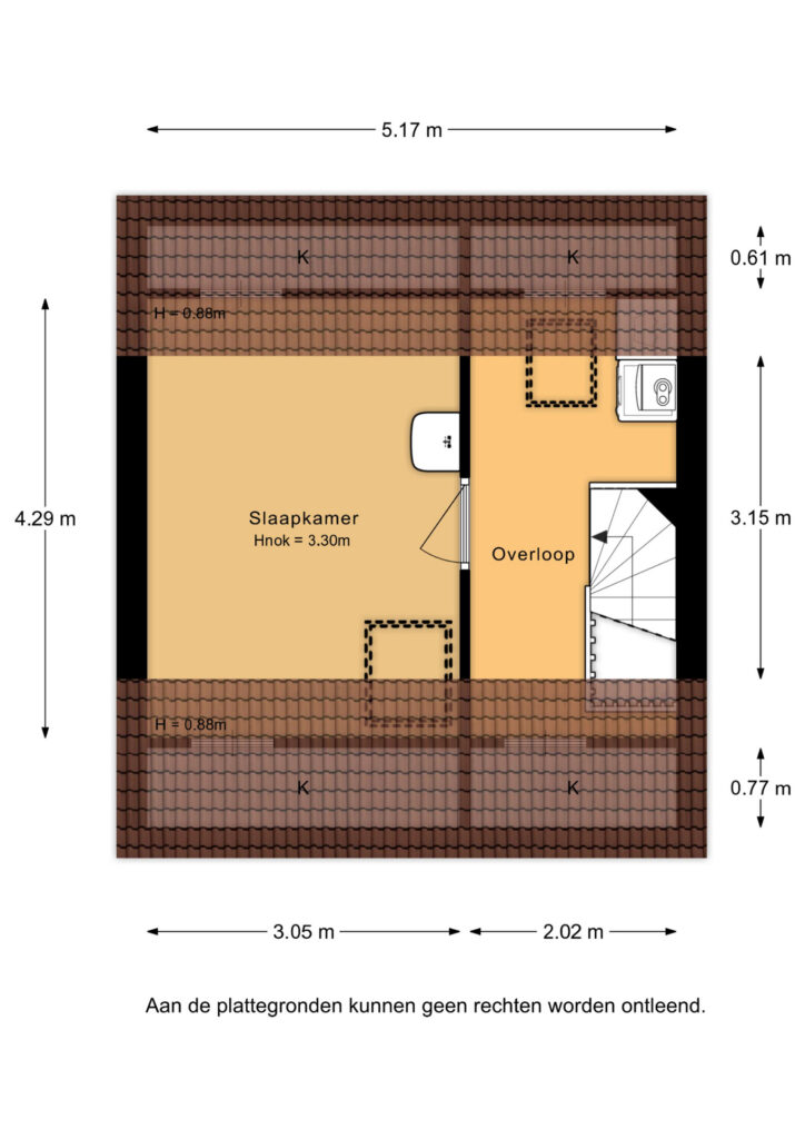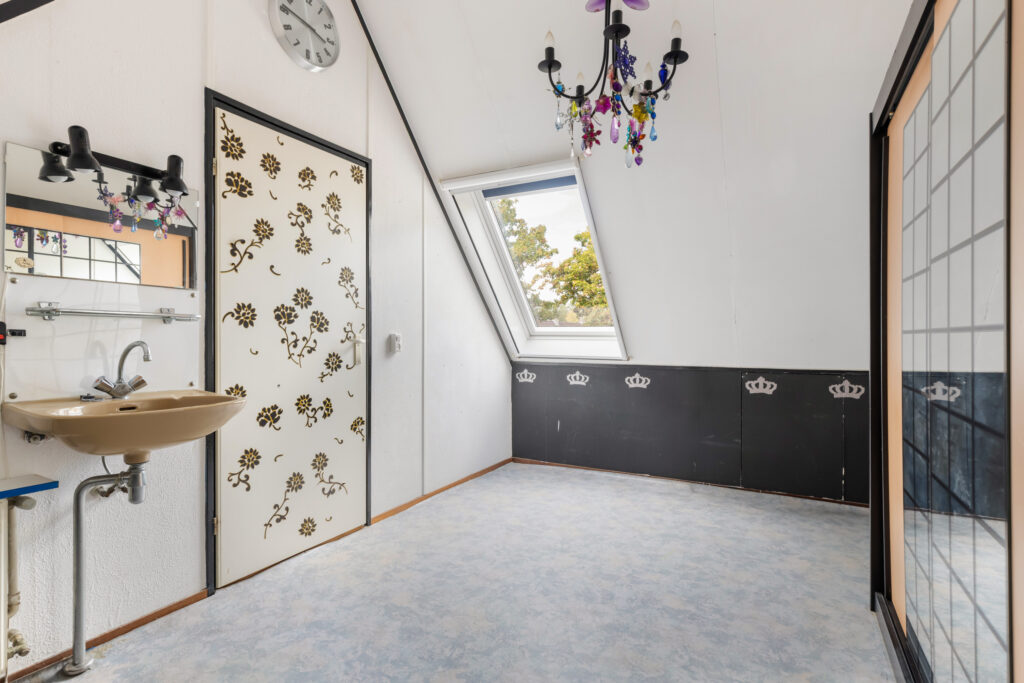Daarnaast beschikt deze verdieping over een derde slaapkamer (ca. 13m²), voorzien van een eigen wastafel en een groot Velux dakraam met raambekleding en schuifhor.