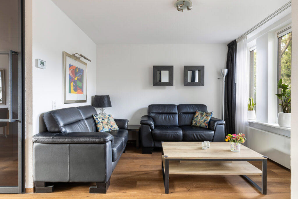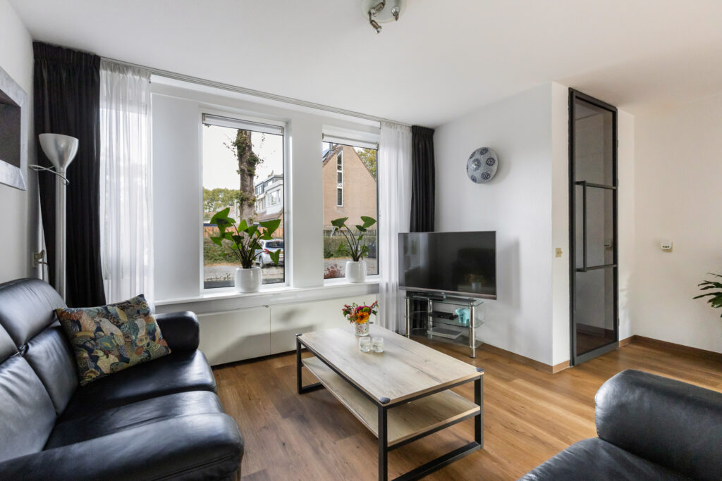 – Ruime en lichte woonkamer met kunststof openslaande deuren naar de achtertuin en schuifhor.