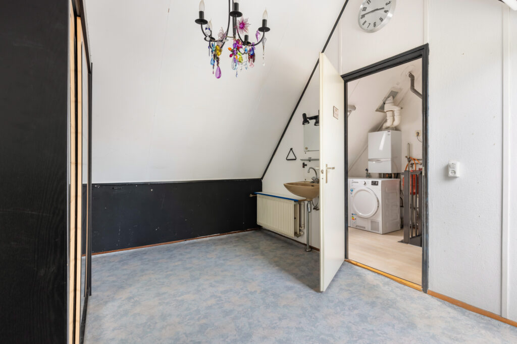 Extra praktisch is de bergruimte achter de knieschotten: ideaal om spullen die je niet dagelijks nodig hebt netjes uit het zicht op te bergen. De overloop is afgewerkt met een laminaatvloer en in de derde slaapkamer ligt vinyl.