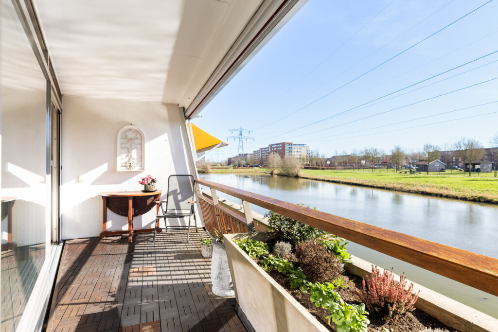 Ruim en licht 3-kamer-maisonette-appartement met balkon en terras op het zuiden en een fantastisch uitzicht over water en groen.
