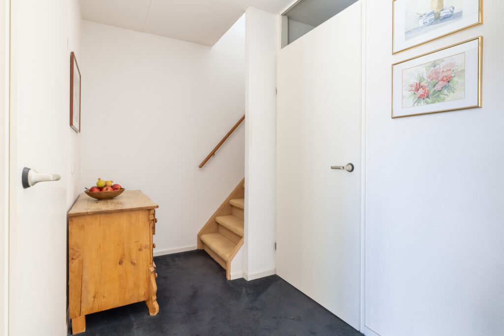 Via de trap in de woonkamer bereikt u het souterrain, waar zich de twee ruime slaapkamers, was- en bergruimte en badkamer bevinden.