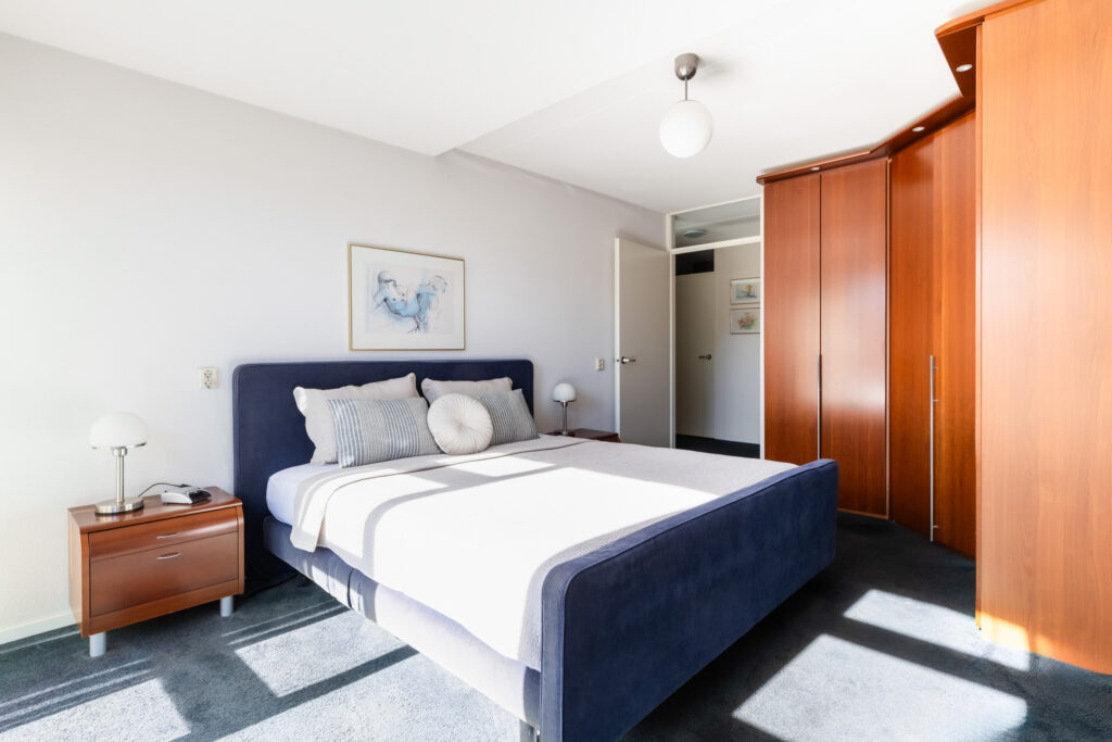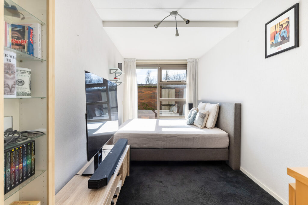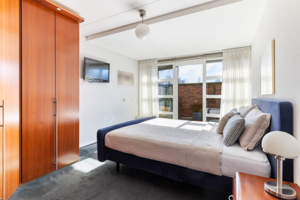 De hoofdslaapkamer (ca. 17m²) is voorzien van een grote kast en heeft directe toegang tot het tweede terras, een heerlijk privéplekje om de dag te beginnen met een kop koffie in de ochtendzon.