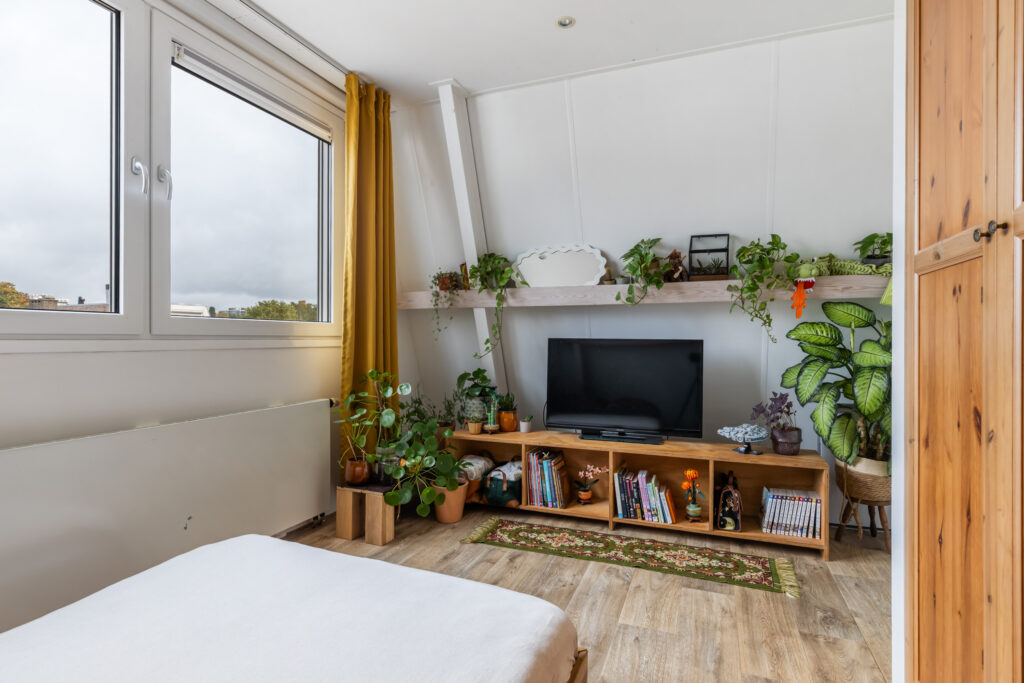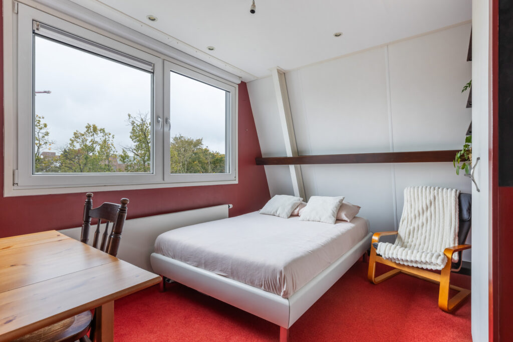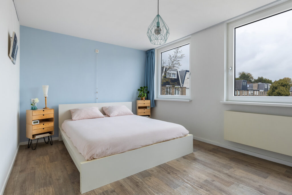 De slaapkamer (ca. 9m²) aan de voorzijde is voorzien van een grote raampartij waardoor je hier geniet van een prettige lichtinval.