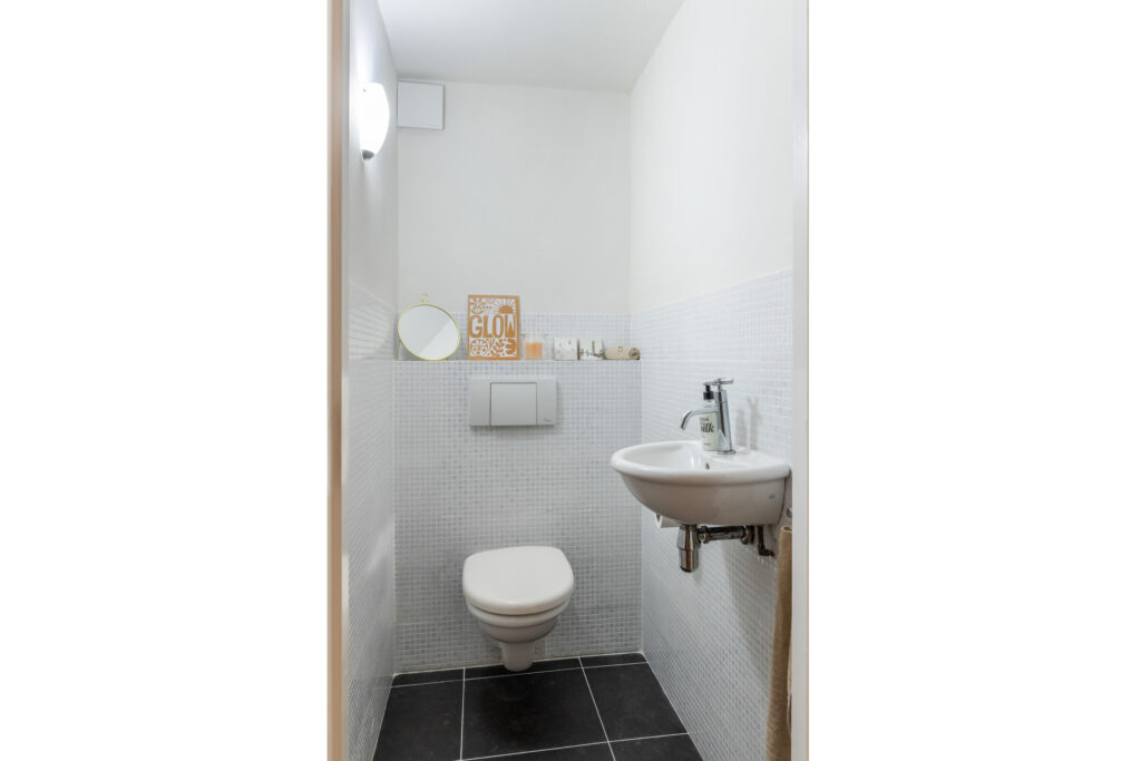 – Mechanische ventilatie in de badkamer en het toilet beneden.