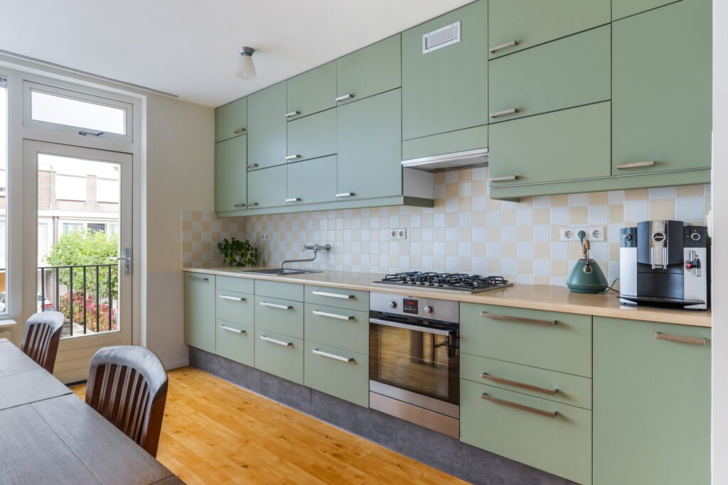 Vanuit de keuken heb je toegang tot het tweede balkon aan de voorzijde van de woning. Hier geniet je van een vrij uitzicht over de wijk. Een heerlijke plek om met een kop koffie de dag te beginnen!