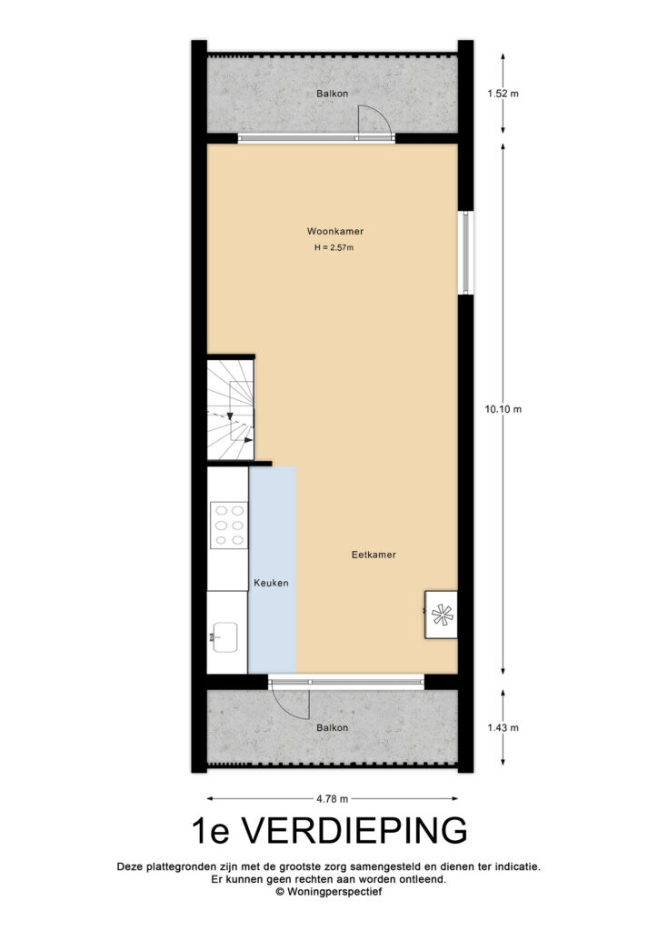 Via de trap vanuit de hal bereik je de royale living met open keuken.