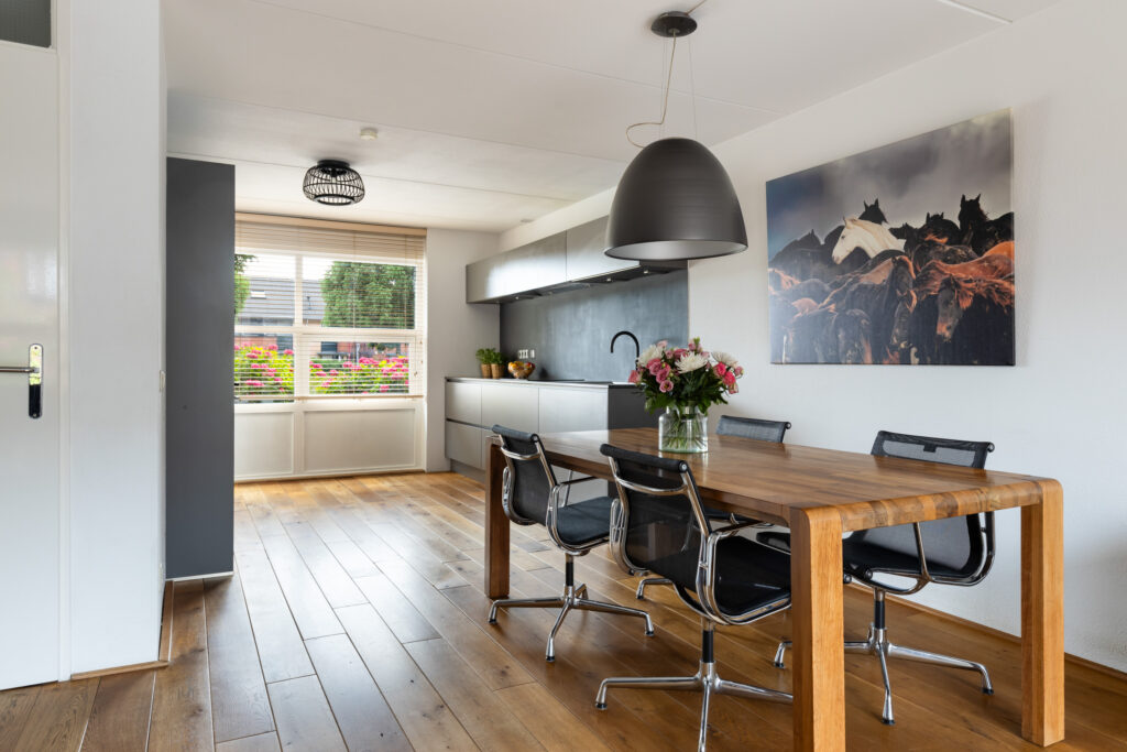 De gehele begane grond is voorzien van een eikenhouten vloer.