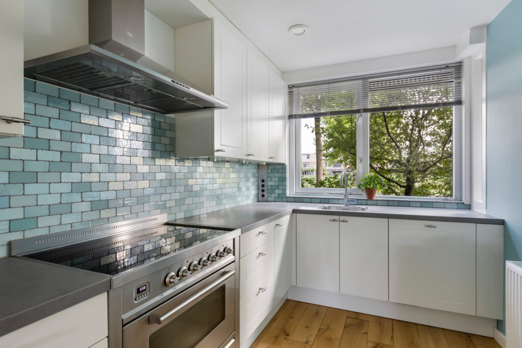 De lichte moderne keuken (ca. 9 m²) wordt prachtig verlicht door een grote raampartij en is voorzien van een keramieken werkblad met RVS spoelbak. De keuken beschikt over diverse inbouwapparatuur, waaronder een stijlvol Boretti fornuis met 5-pits inductiekookplaat, een Boretti RVS afzuigkap, een Boretti combimagnetron en een vaatwasser en koel-/vriescombinatie van Pelgrim.