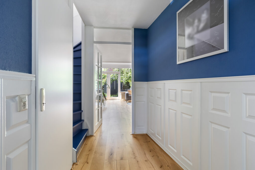 Vanuit de ruime hal met meterkast, garderobe en toilet (2018), bereik je de woonkamer met een open keuken aan de voorzijde.