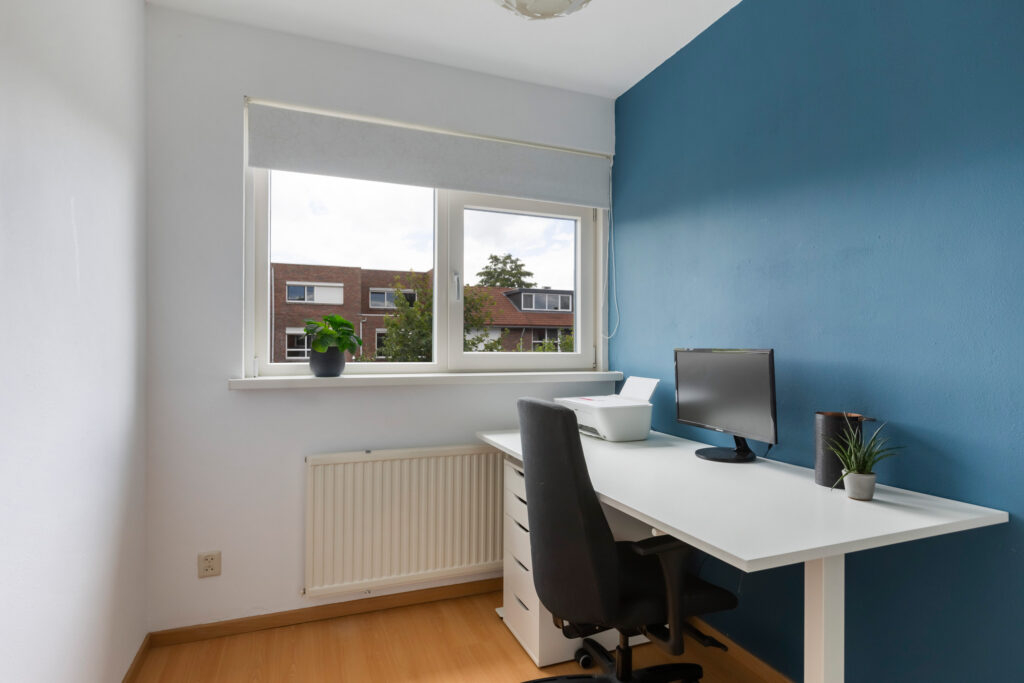 In deze kamer is tevens een afgesloten ruimte aanwezig met de opstelplaats voor de was- en droogmachine, de mechanische ventilatie-unit (2024) en de omvormer voor de zonnepanelen. Aan de achterzijde is de kamer voorzien van onderhoudsvriendelijke kunststof kozijnen met elektrisch bedienbare rolluiken, wat bijdraagt aan comfort en isolatie