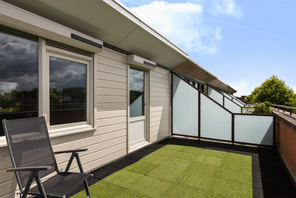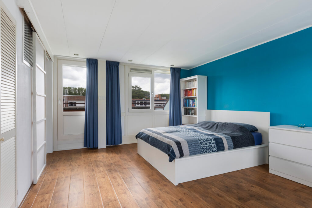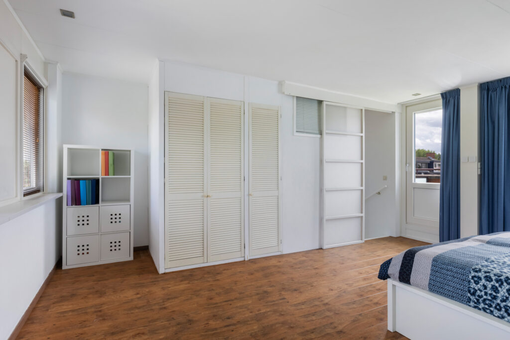 Via de trap bereik je de tweede verdieping, die is afgesloten met een praktische schuifdeur. Hier bevindt zich de ruime vierde slaapkamer (ca. 21 m²) met aan de achterzijde een heerlijk zonnig dakterras (ca. 16 m²).