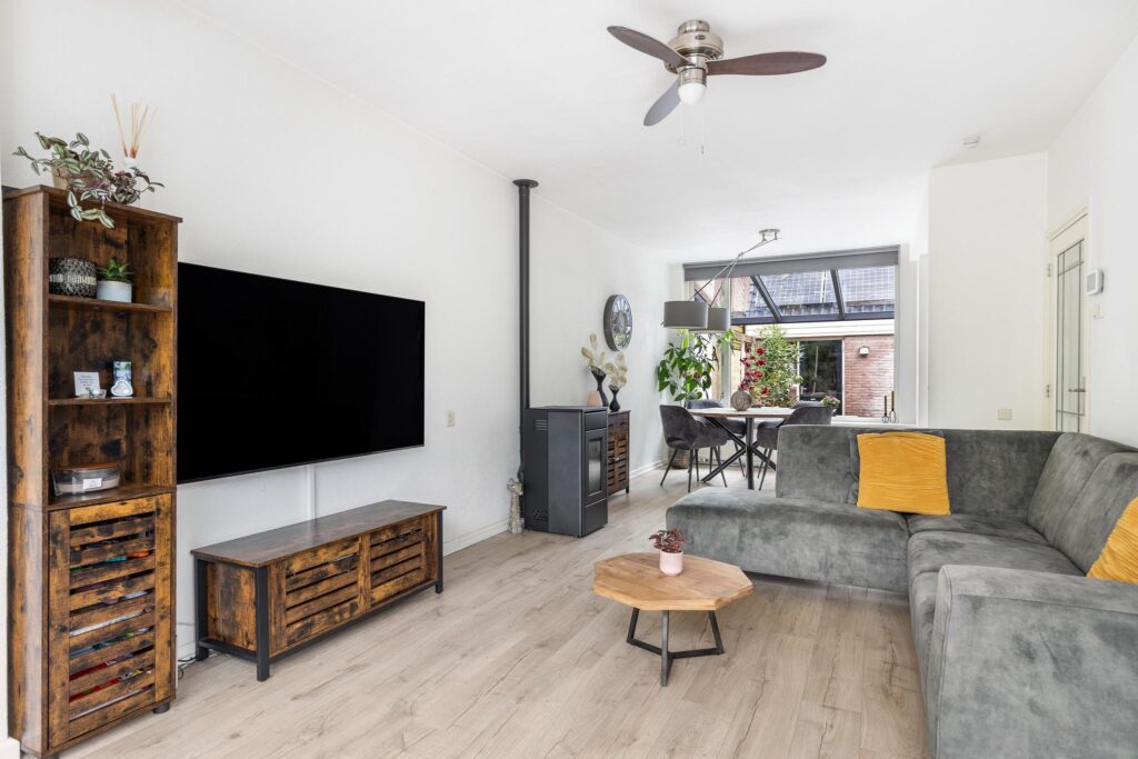 Verder is de woonkamer uitgerust met een sfeervolle en energiezuinige pelletkachel.