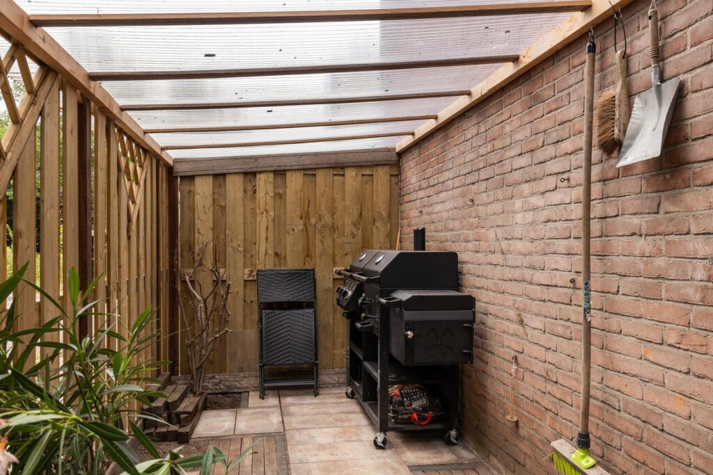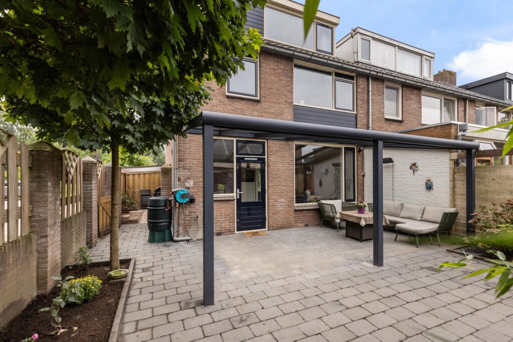 – Ruime en beschutte voor-, zij- en achtertuin v.v. buitenkraan en sfeervolle terrasoverkapping met verlichting.