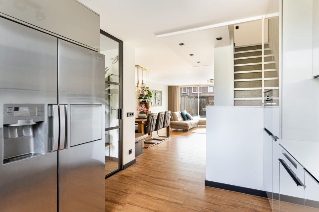 – Vernieuwde woonkeuken (2022) aan de voorzijde van de woning.