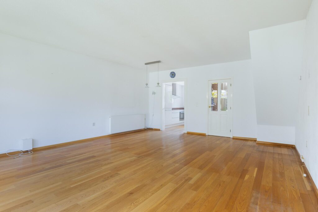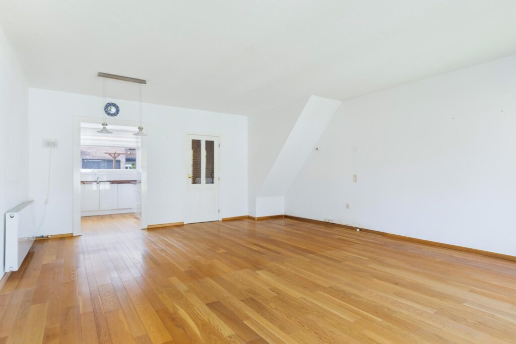 Vanuit de hal met meterkast, garderobe en toilet, bereik je de lichte woonkamer met aan de voorzijde een open keuken met grote raampartij.
