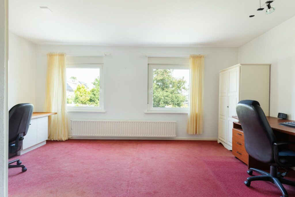 Beide verdiepingen zijn afgewerkt met vloerbedekking.
