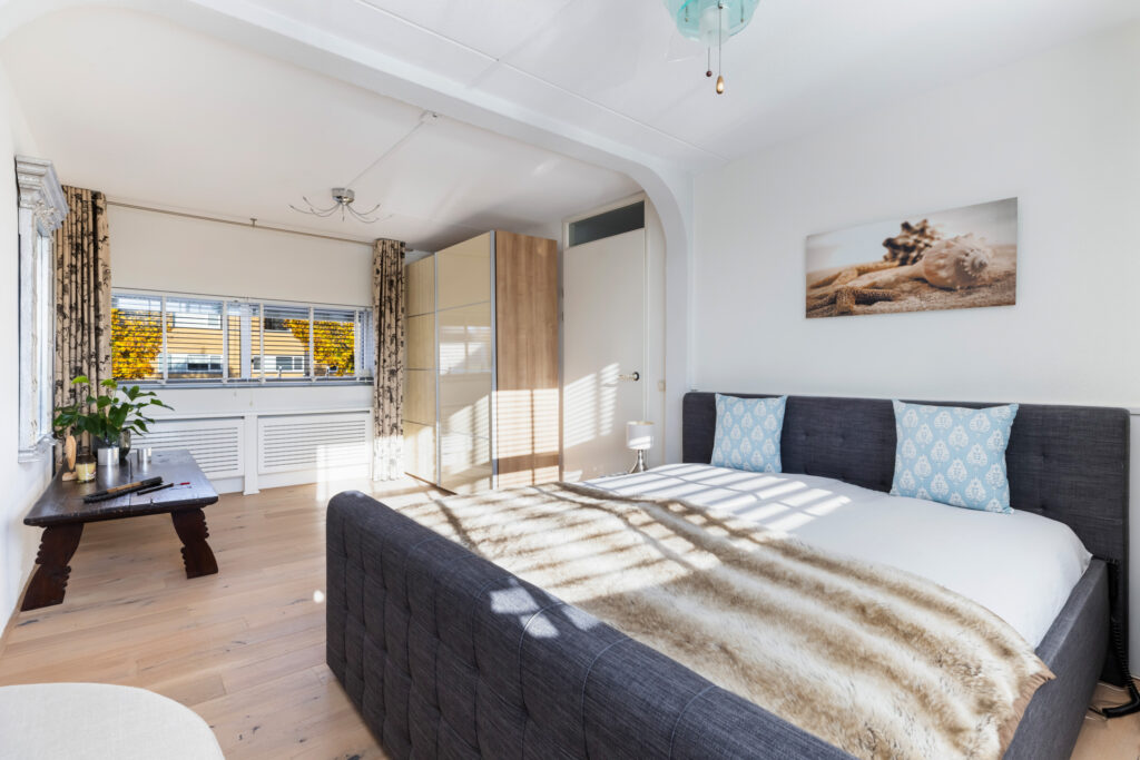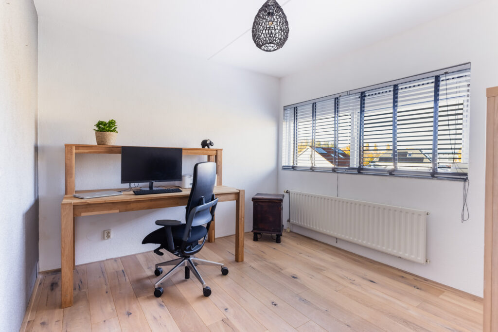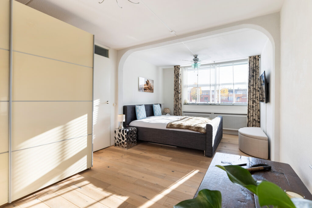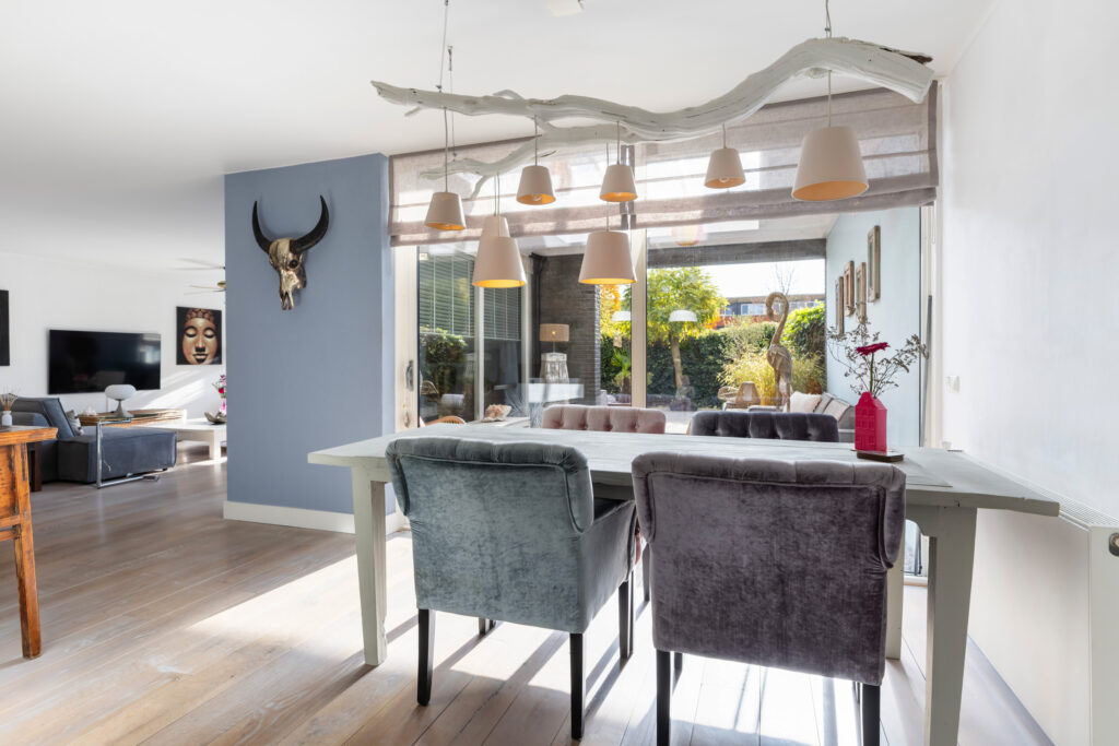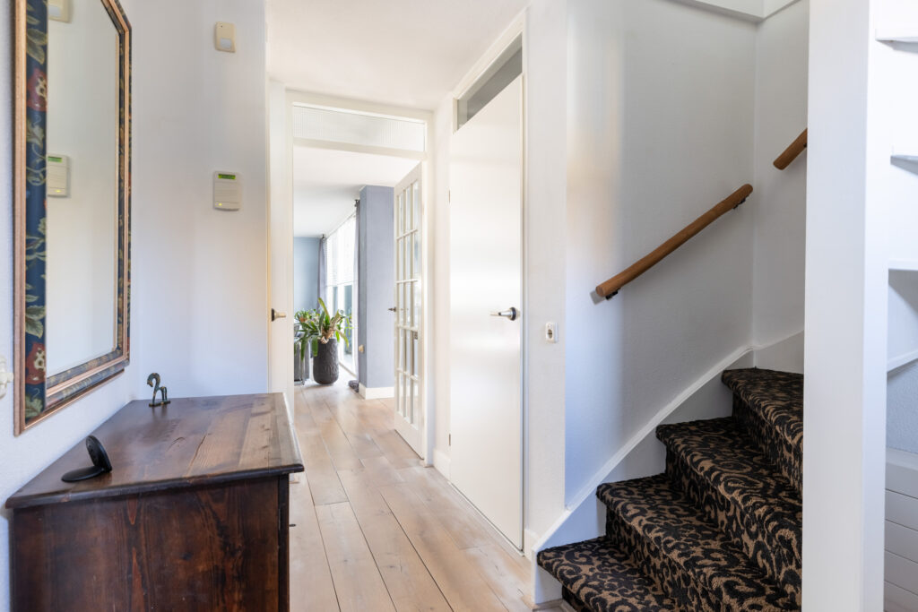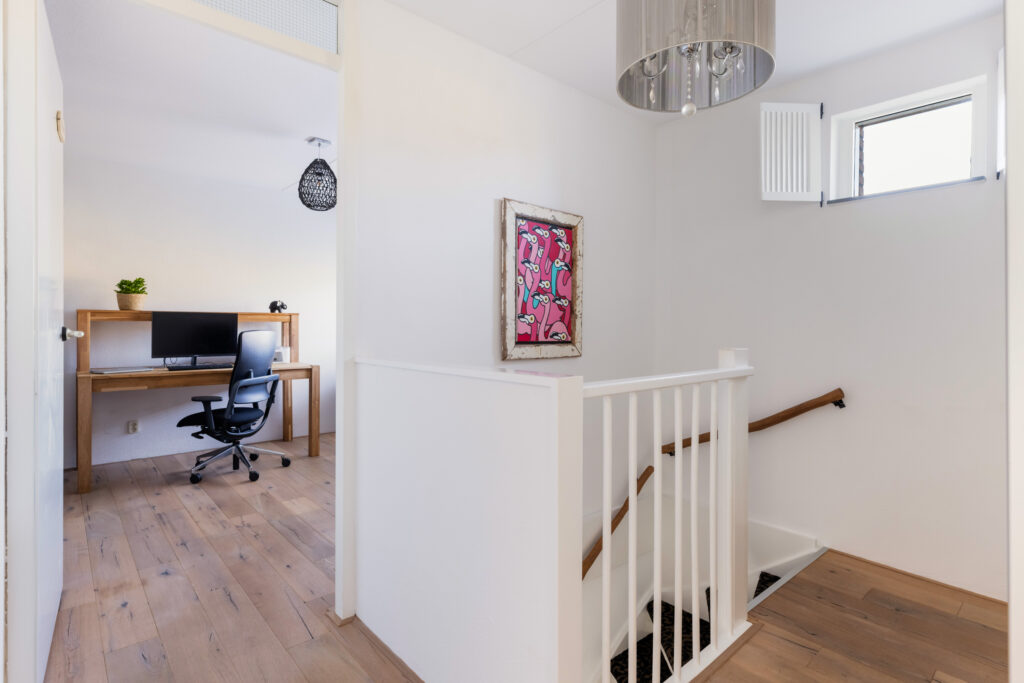 De woning kenmerkt zich door de ruime indeling en de hoeveelheid natuurlijk licht die door de grote raampartijen naar binnen valt.