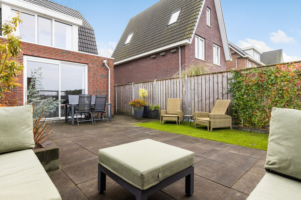 – Diepe achtertuin op het westen v.v. buitenkraan met prachtig weids uitzicht.