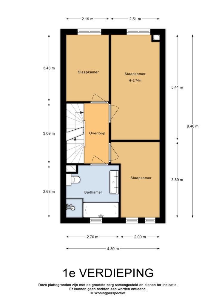 Via de trap in hal bereik je de overloop op de 1e verdieping met toegang tot drie ruime slaapkamers.
